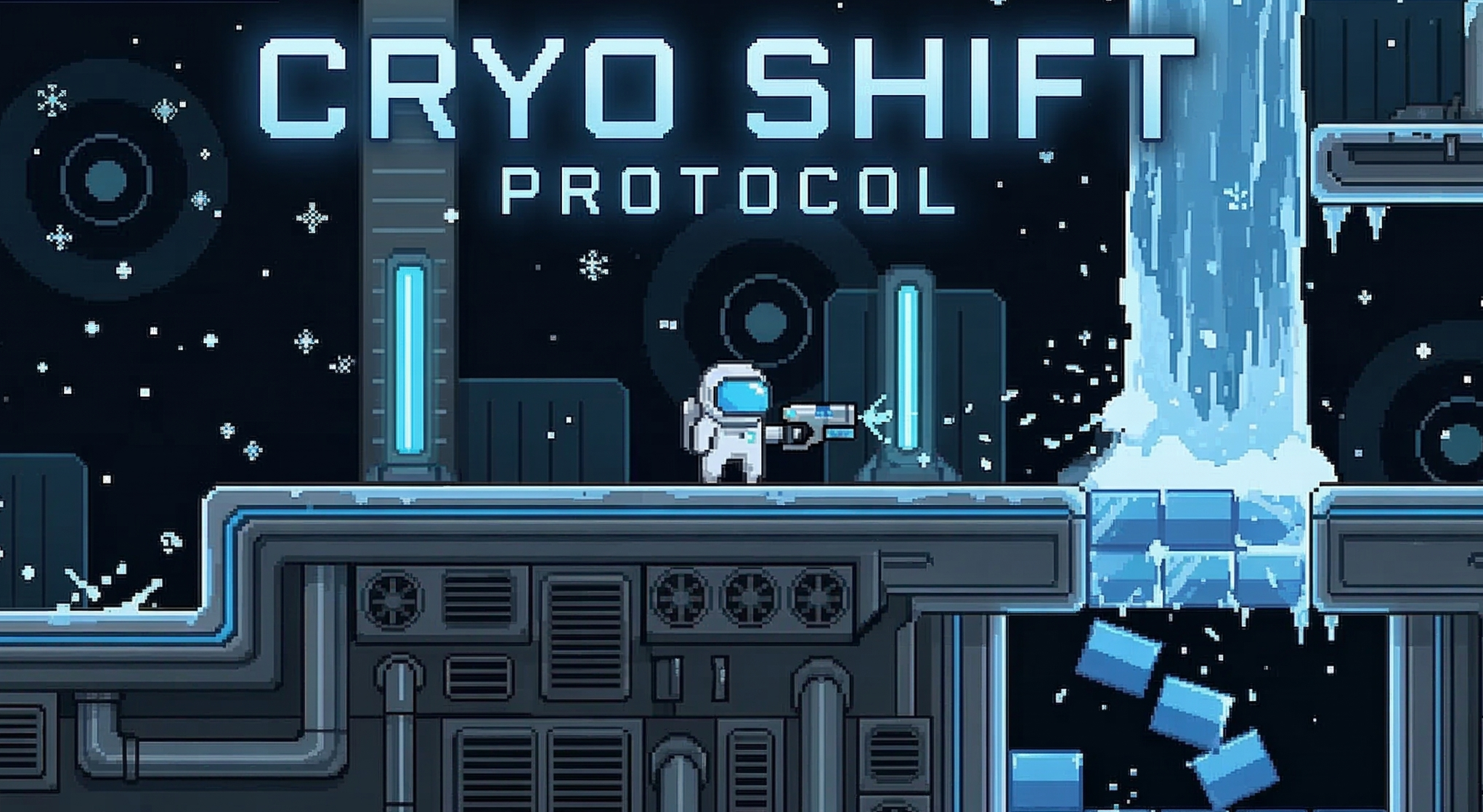 CRYO SHIFT is a pixel-art puzzle platformer set inside a frozen research station where every room is built around heat, ice, and environmental control.